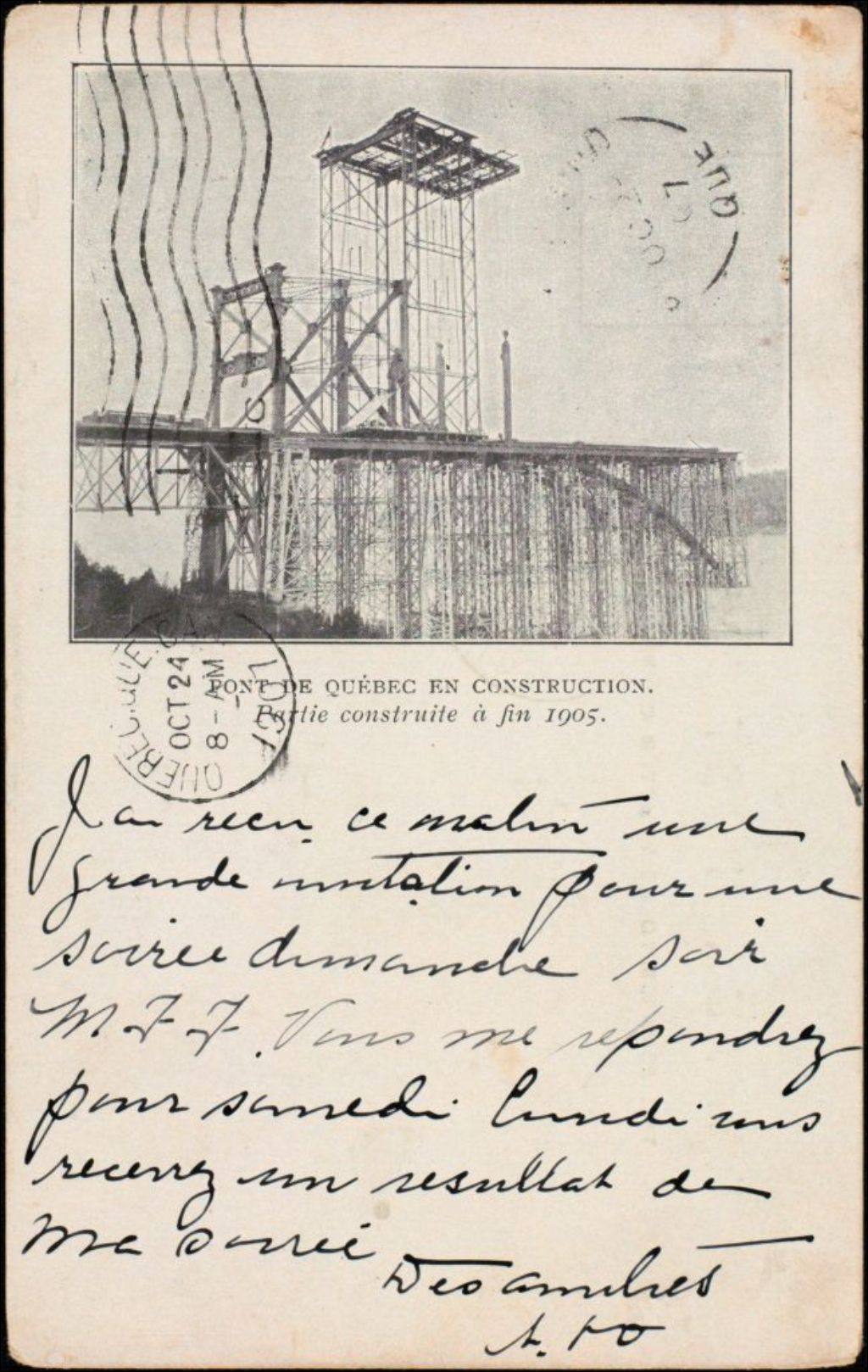 Pont de Québec en construction, partie construite à la fin [de] 1905