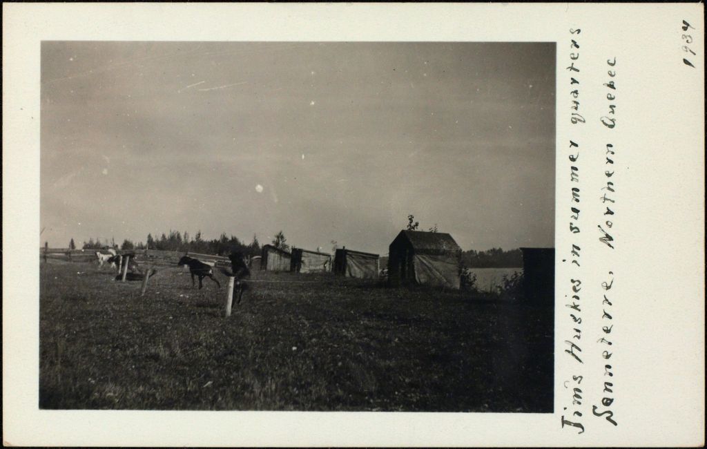 Jim's Huskies in summer quarters, Senneterre, Northern Quebec, 1934