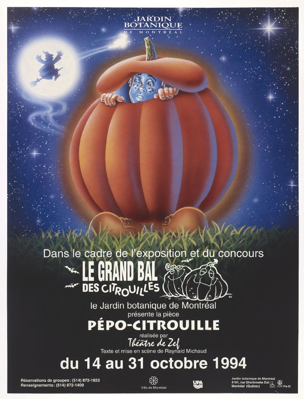 Dans le cadre de l'exposition et du concours Le Grand Bal des citrouilles le Jardin botanique de Montréal présente la pièce Pépo-citrouille..., texte et mise en scène de Raynald Michaud