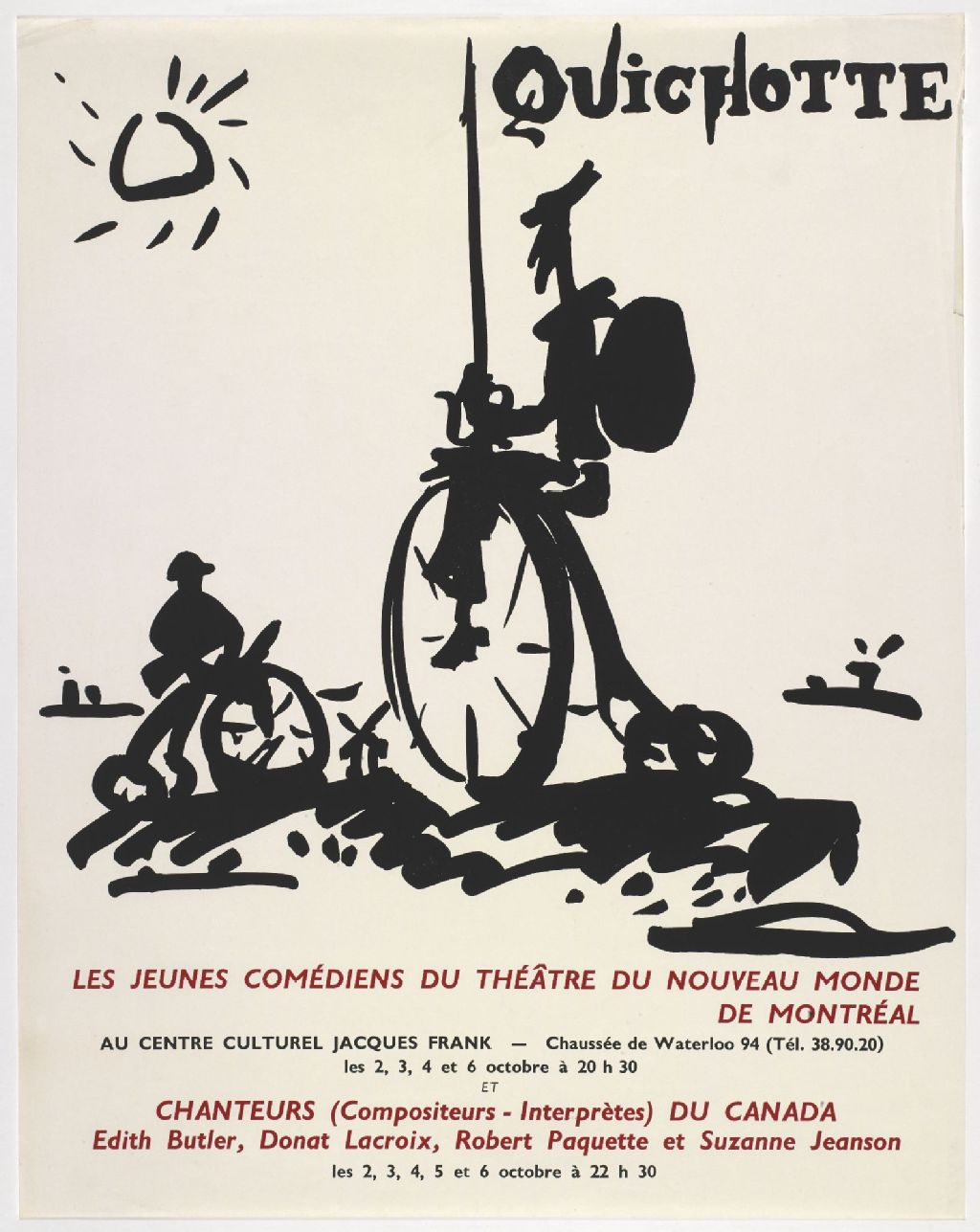 Quichotte les jeunes comédiens du Théâtre du nouveau monde de Montréal au Centre culturel Jacques Frank... : chanteurs (compositeurs-interprètes) du Canada, Edith Butler, Donat Lacroix, Robert Paquette...
