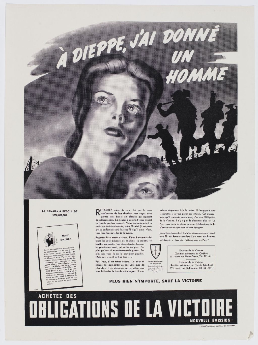 À Dieppe, j'ai donné un homme ... achetez des obligations de la victoire, nouvelle émission