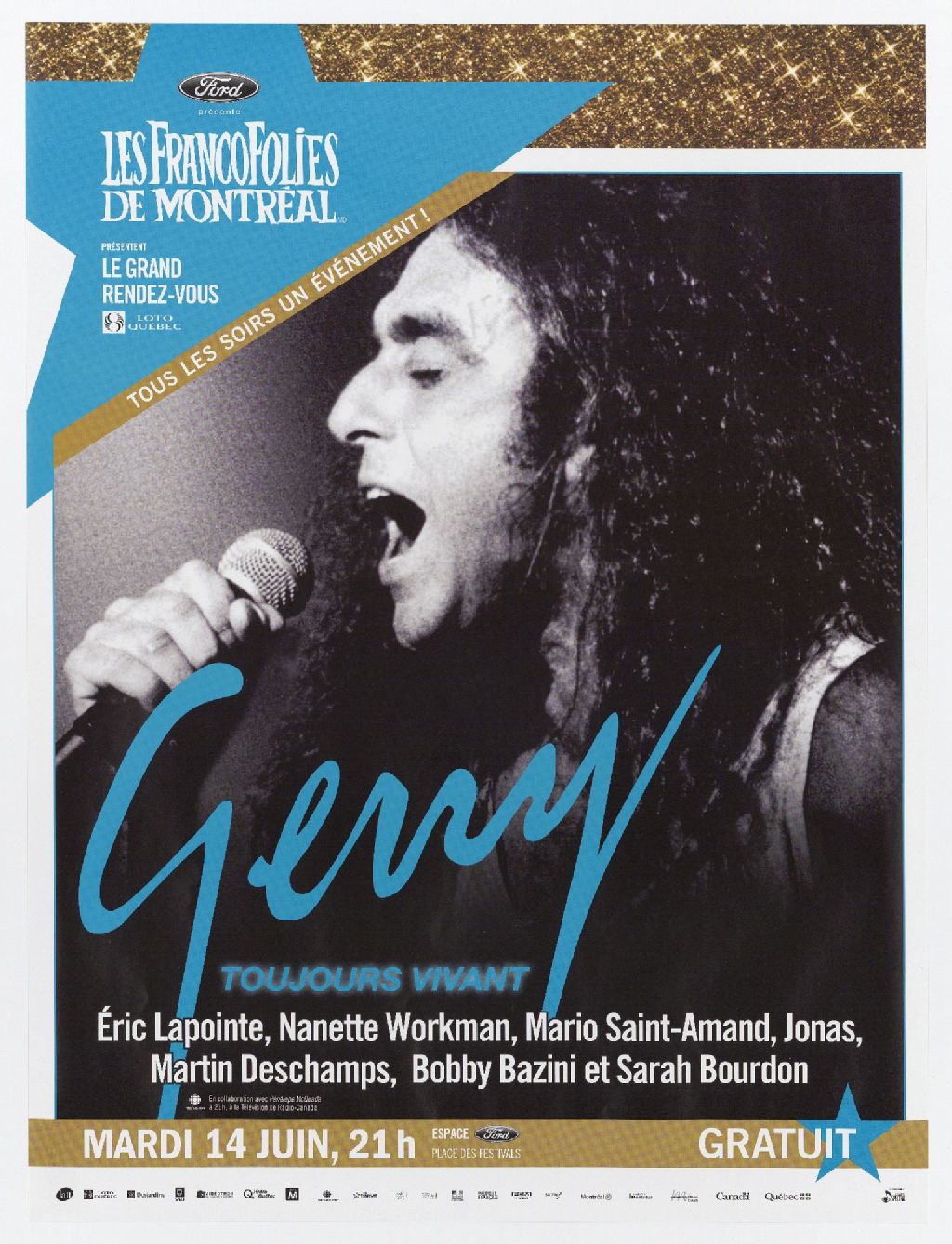 Les FrancoFolies de Montréal présentent Le Grand Rendez-vous Loto-Québec ... Gerry, toujours vivant ... Éric Lapointe, Nanette Workman, Mario Saint-Amand ...