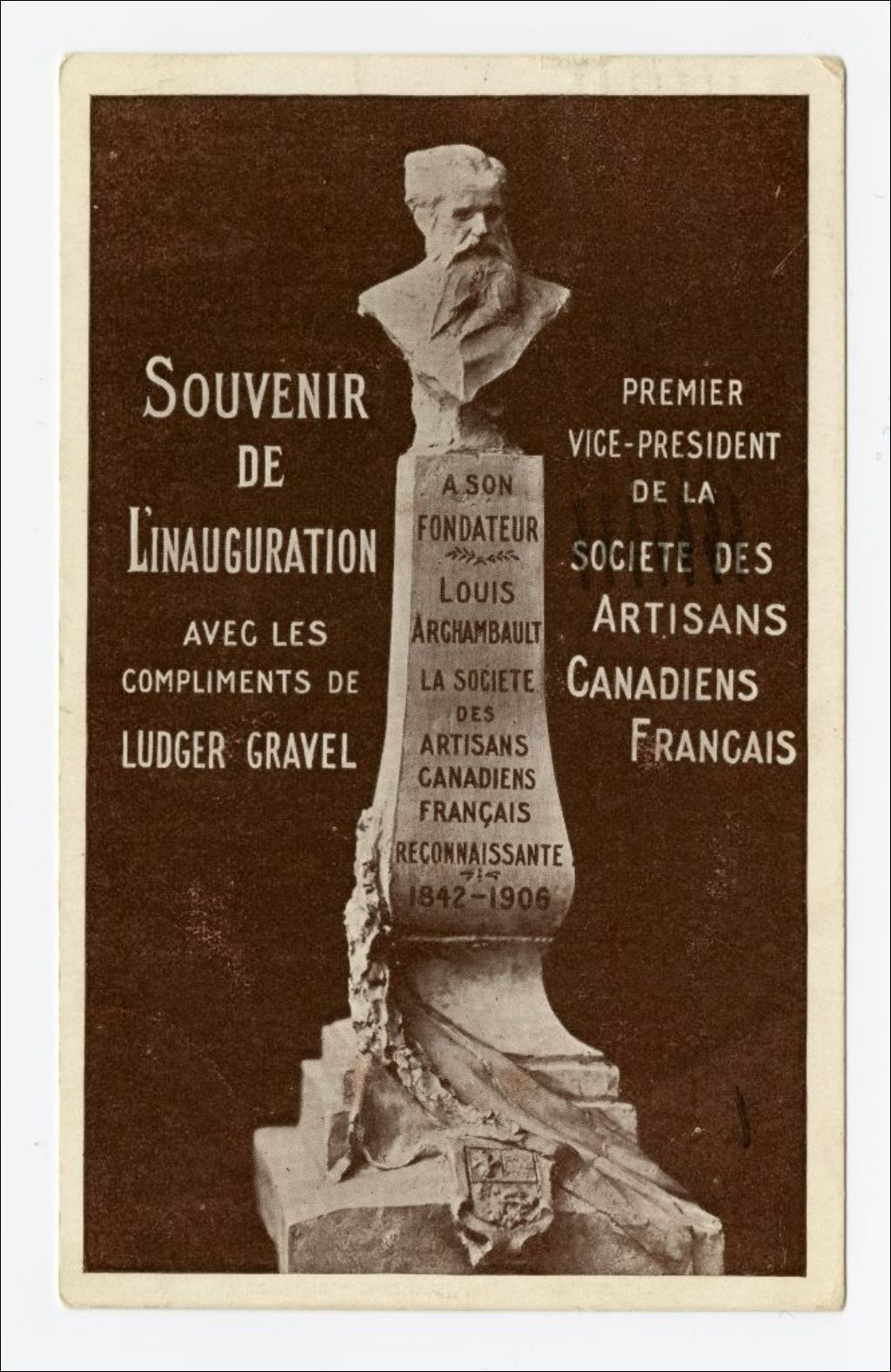 Souvenir de l'inauguration avec les compliments de Ludger Gravel premier vice-président de la Société des artisans canadiens-français