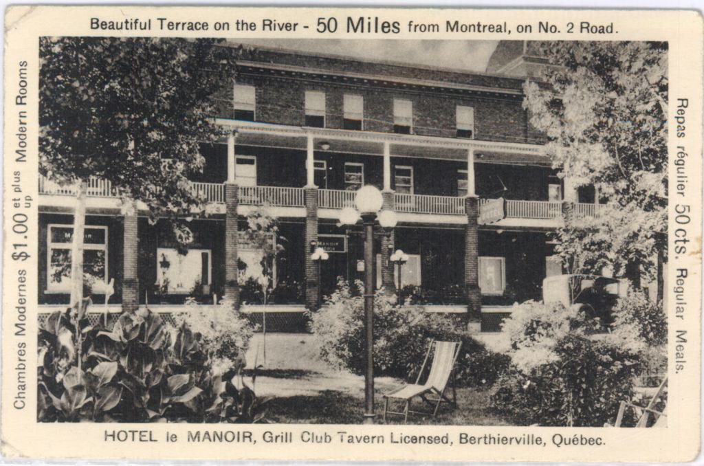 Beautiful Terrace on the River - 50 Miles from Montreal, on No. 2 Road Hotel le Manoir, Grill Club Tavern Licensed, Berthierville, Québec.