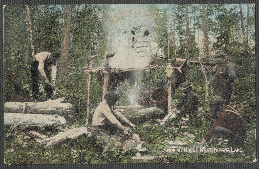 Smoking moose meat, Kipawa Lake