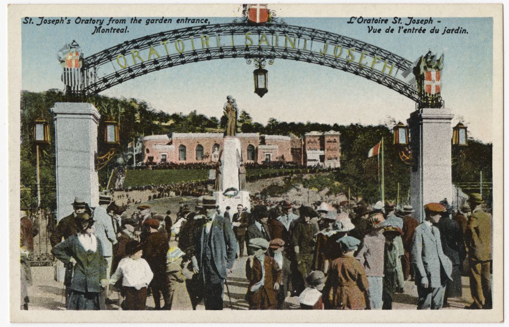 St. Joseph's Oratory from the garden entrance, Montreal = L'Oratoire St. Joseph, vue de l'entrée du jardin, Montréal