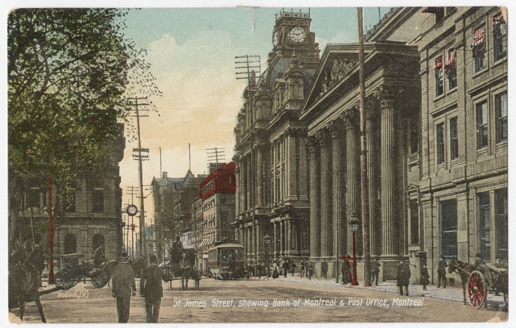 St. James Street, showing Bank of Montreal & Post Office, Montreal
