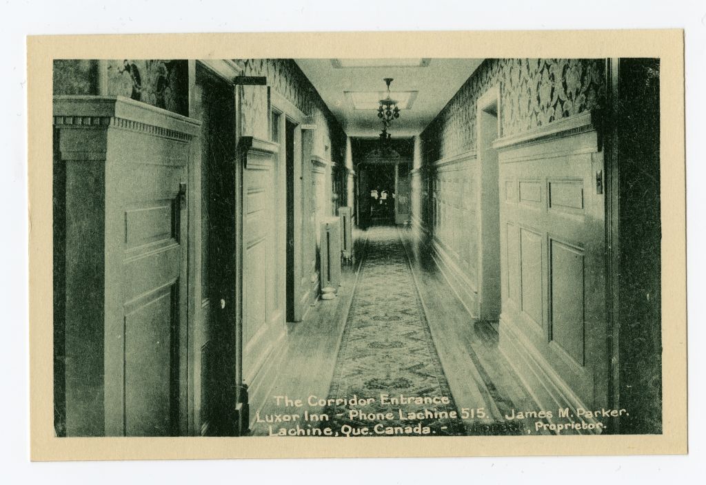 The corridor entrance, Luxor Inn, phone Lachine 515 , Lachine, Que, Canada James M. Parker, Proprietor