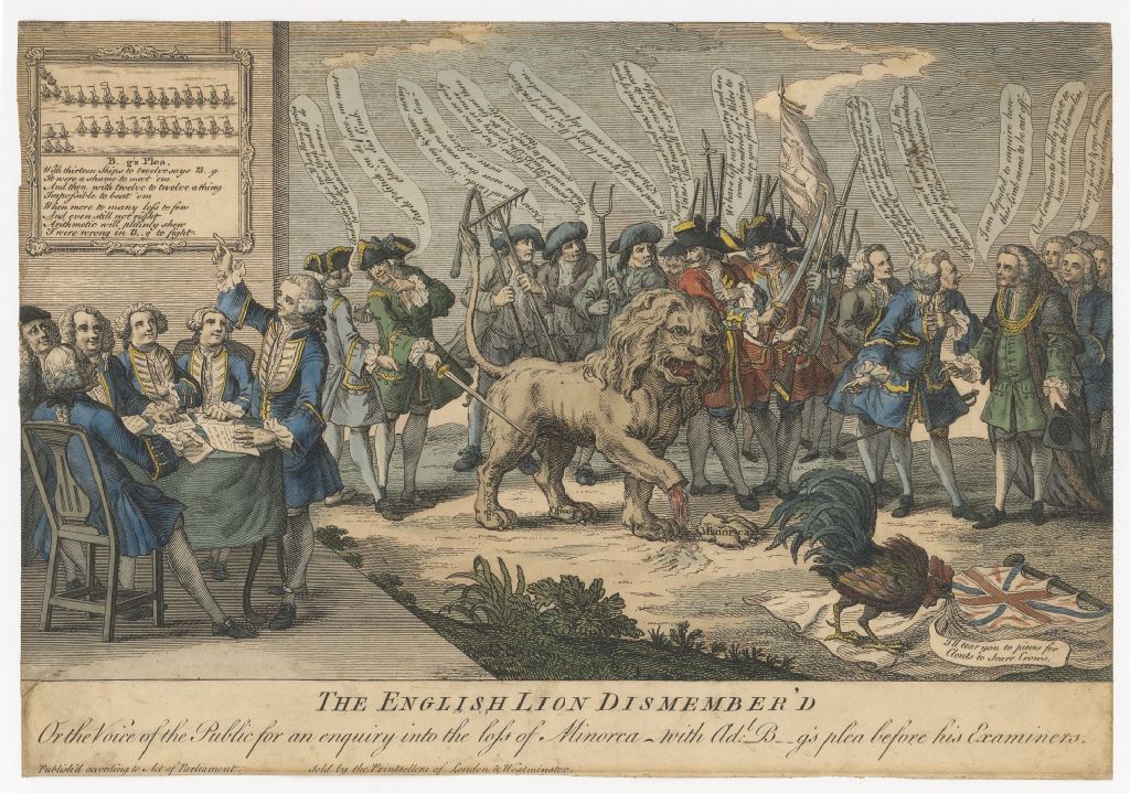 The English lion dismember'd, or, The voice of the public for an enquiry into the loss of Minorca : with Ad'l B--g's before his examiners