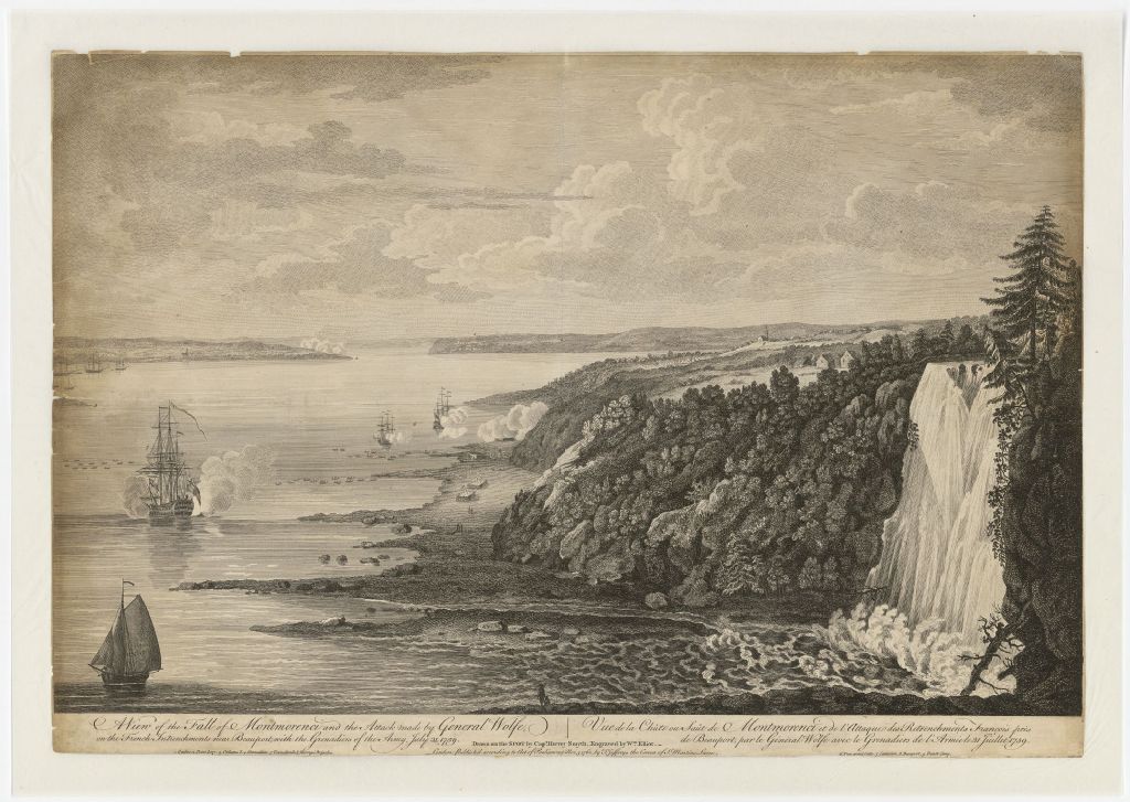 A view of the Fall of Montmorenci and the attack made by General Wolfe, on the French intrenchments near Beauport, with the Grenadiers of the army, July 31. 1759 = Vue de la chûte de Montmorenci et de l'attaque des retranchements françois près de Beauport par le Général Wolfe avec le Grenadiers de l'armée le 31 juillet 1759 /