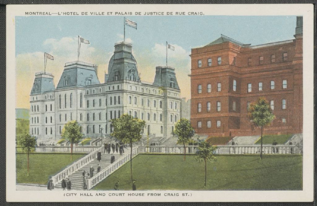 Montréal - l'hôtel de ville et palais de justice de rue Craig = Montreal - (City Hall and Court House from Craig St.)
