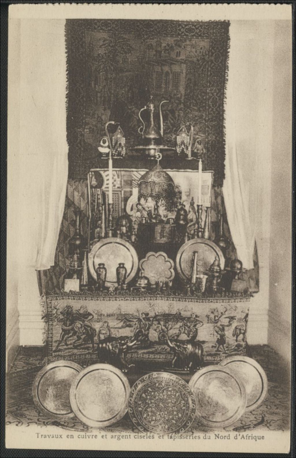 Travaux en cuivre et argent ciselés et tapisseries du Nord d'Afrique
