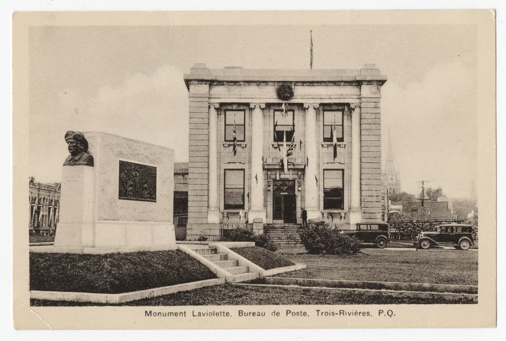 Monument Laviolette, Bureau de Poste, Trois-Rivières, P.Q. /