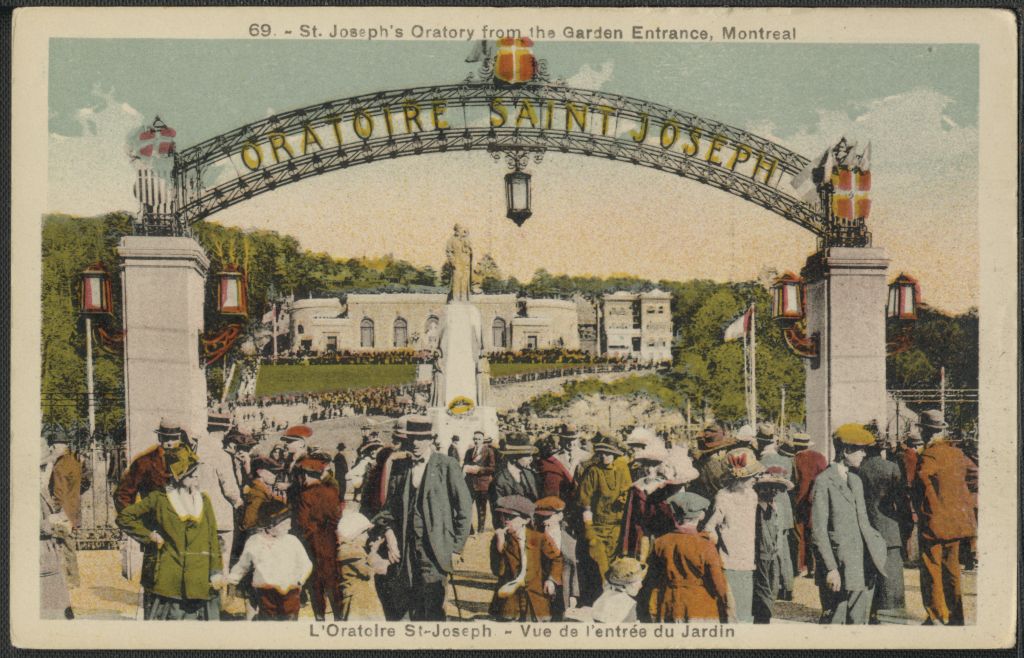 St. Joseph's Oratory from the garden entrance, Montreal = L'Oratoire St-Joseph - vue de l'entrée du jardin /