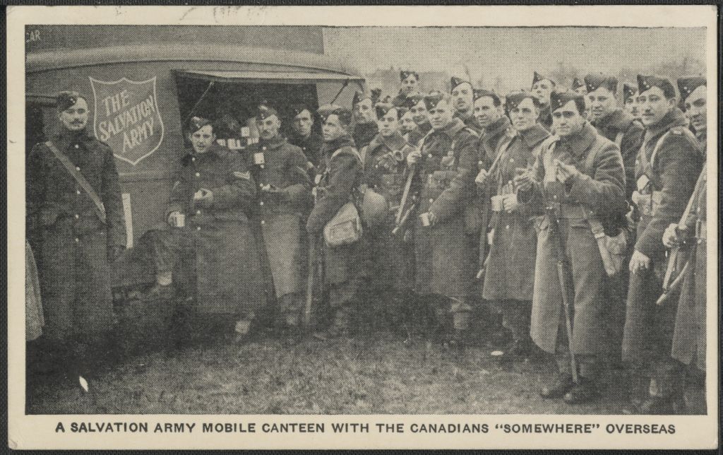 Salvation army mobile canteen with the Canadiens «somewhere» overseas /