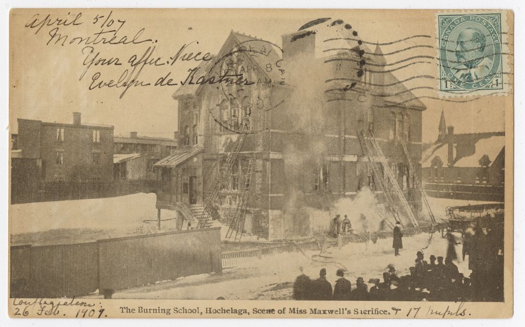 The burning school, Hochelaga, scene of Miss Maxwell's sacrifice