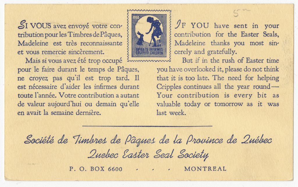 Société de timbres de Pâques de la province de Québec = Quebec Easter Seal Society