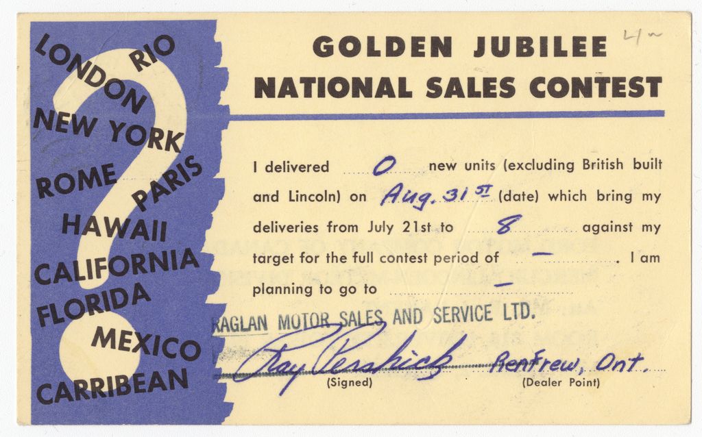 Golden jubilee national sales company : Ford Motor Company of Canada, Ltd.