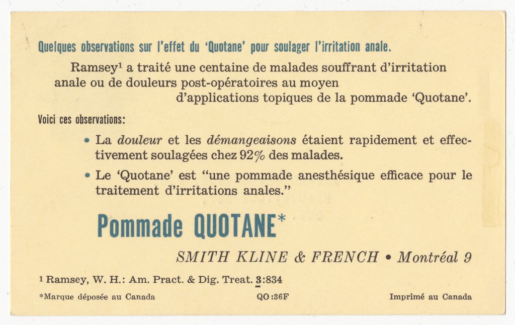 Pommade Quotane : Smith Kline & French, Montréal