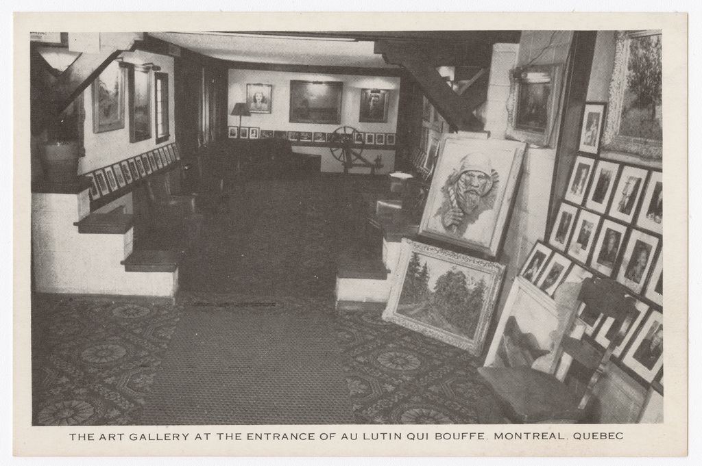 Art gallery at the entrance of Au Lutin qui bouffe, Montreal, Quebec
