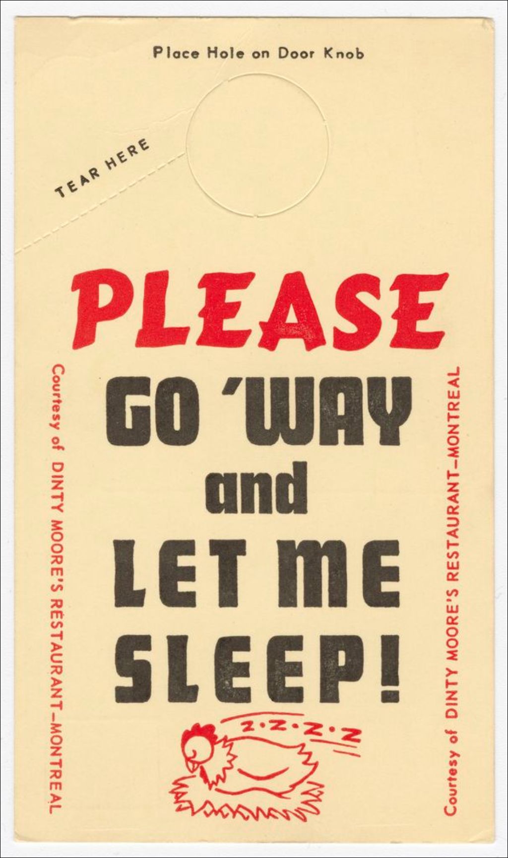 Please go 'way and let me sleep! : courtesy of Dinty Moore's restaurant-Montreal