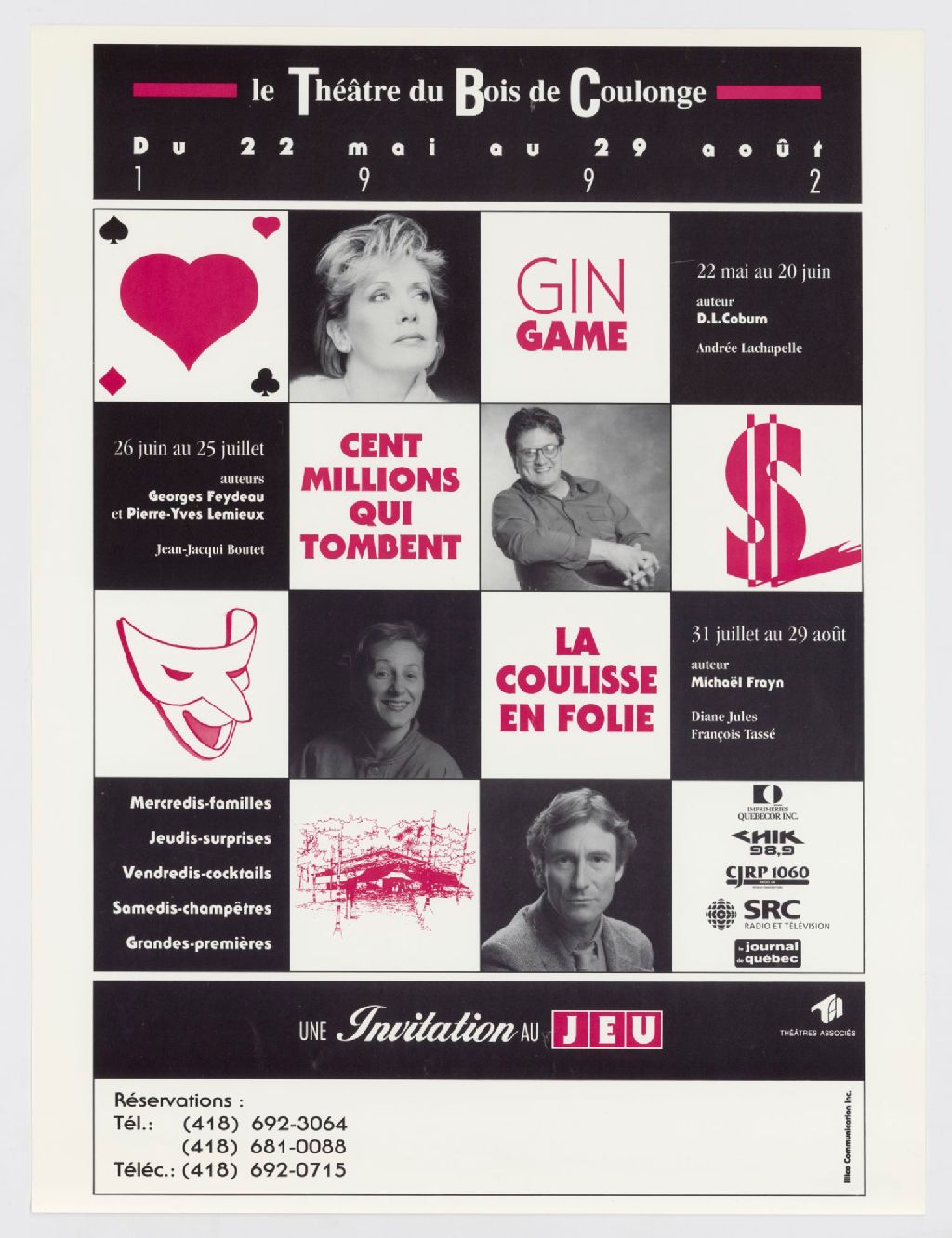 Gin Game, auteur D.L.Coburn... Cent milions qui tombent, auteur Georges Feydeau et Pierre-Yves Lemieux... La coulisse en folie, auteur Michaël Frayn... une invitation au jeu