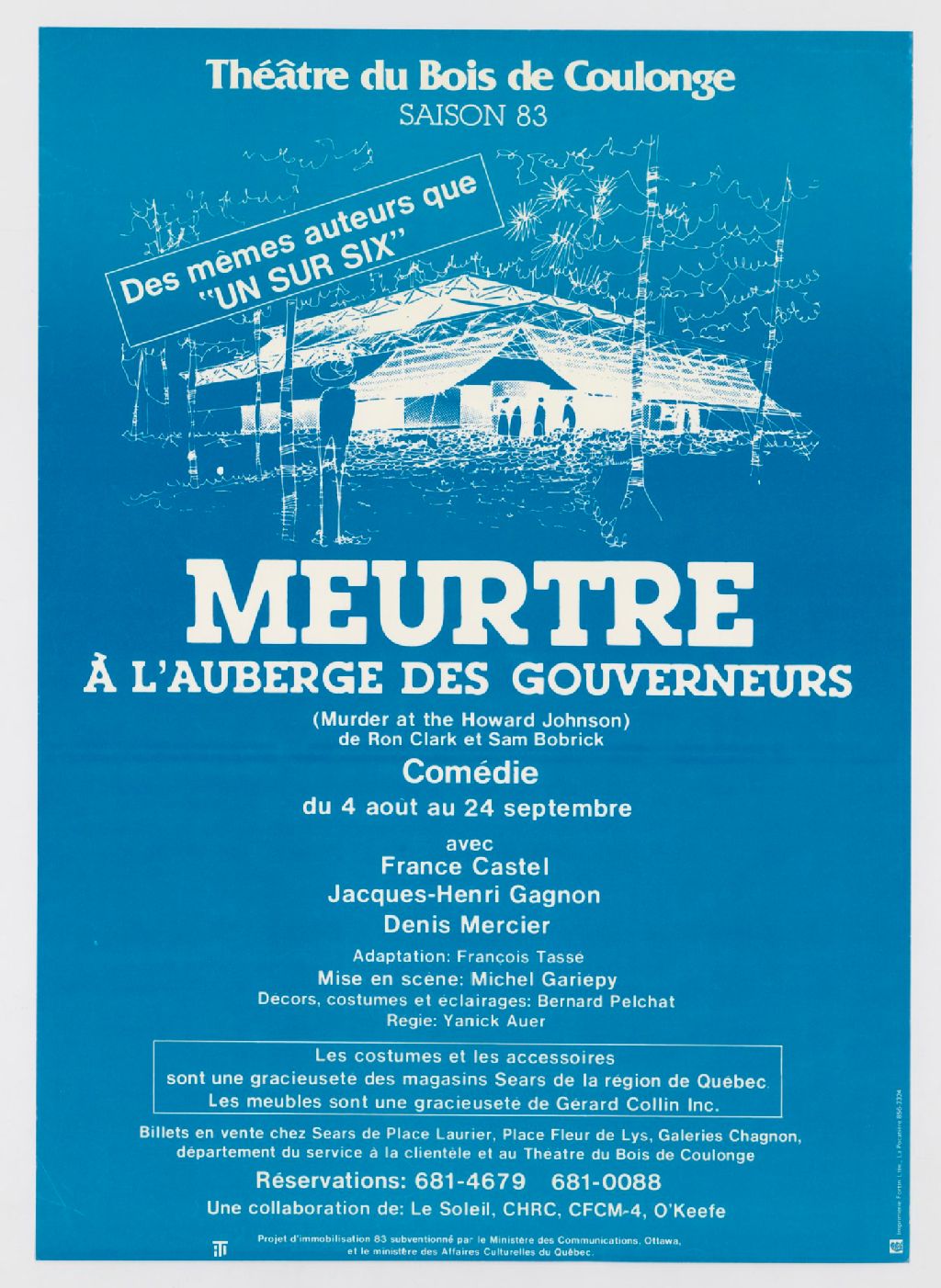 Meurtre à l’auberge des gouverneurs (Murder at the Joward Johnson), de Ron Clark et Sam Bobrick, adaptation François Tassé, mise en scène Michel Gariépy