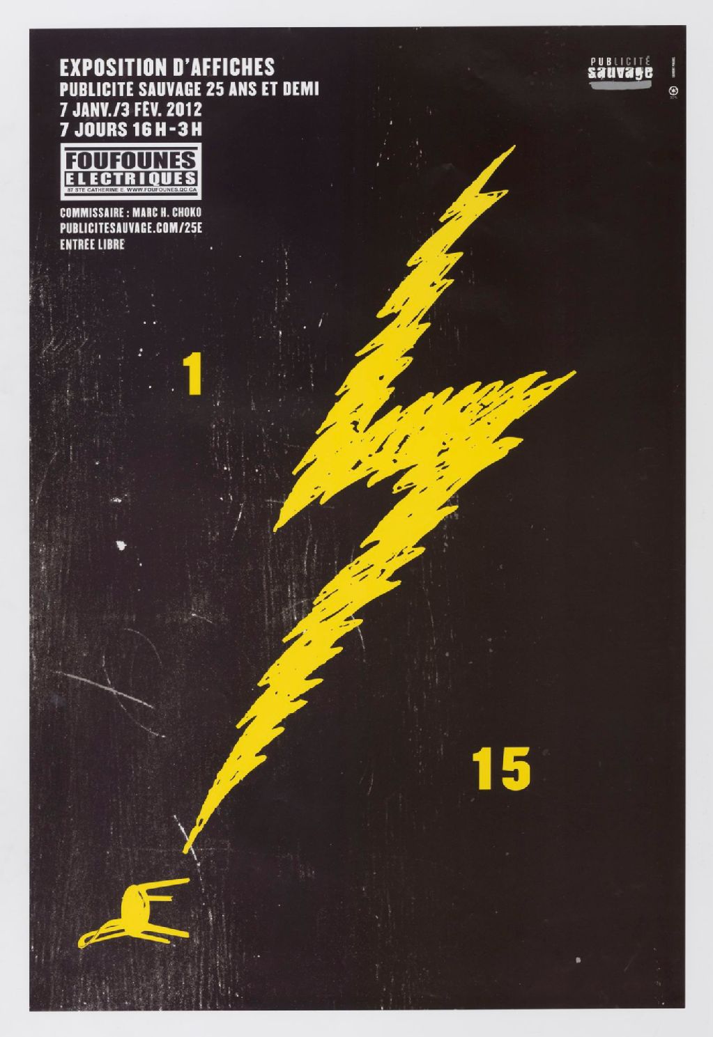 1/15, exposition d'affiches, Publicité sauvage, 25 ans et demi, 7 janv.-3 fév. 2012 ... Foufounes électriques ... commissaire Marc H. Choko