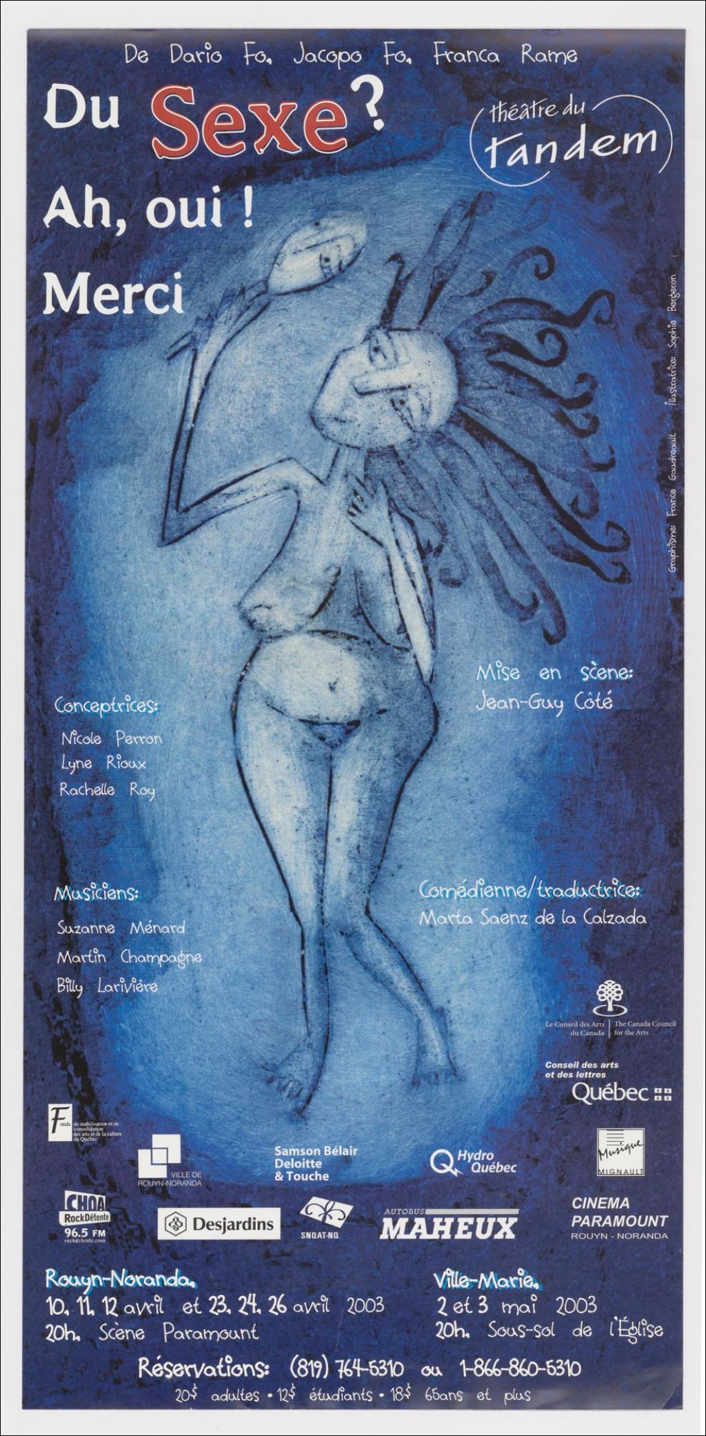 Du sexe? Ah oui! Merci, de Dario Fo, Jacopo Fo, Franca Rame, mise en scène: Jean-Guy Côté ... : comédienne/traductrice: Marta Saenz de la Calzada /