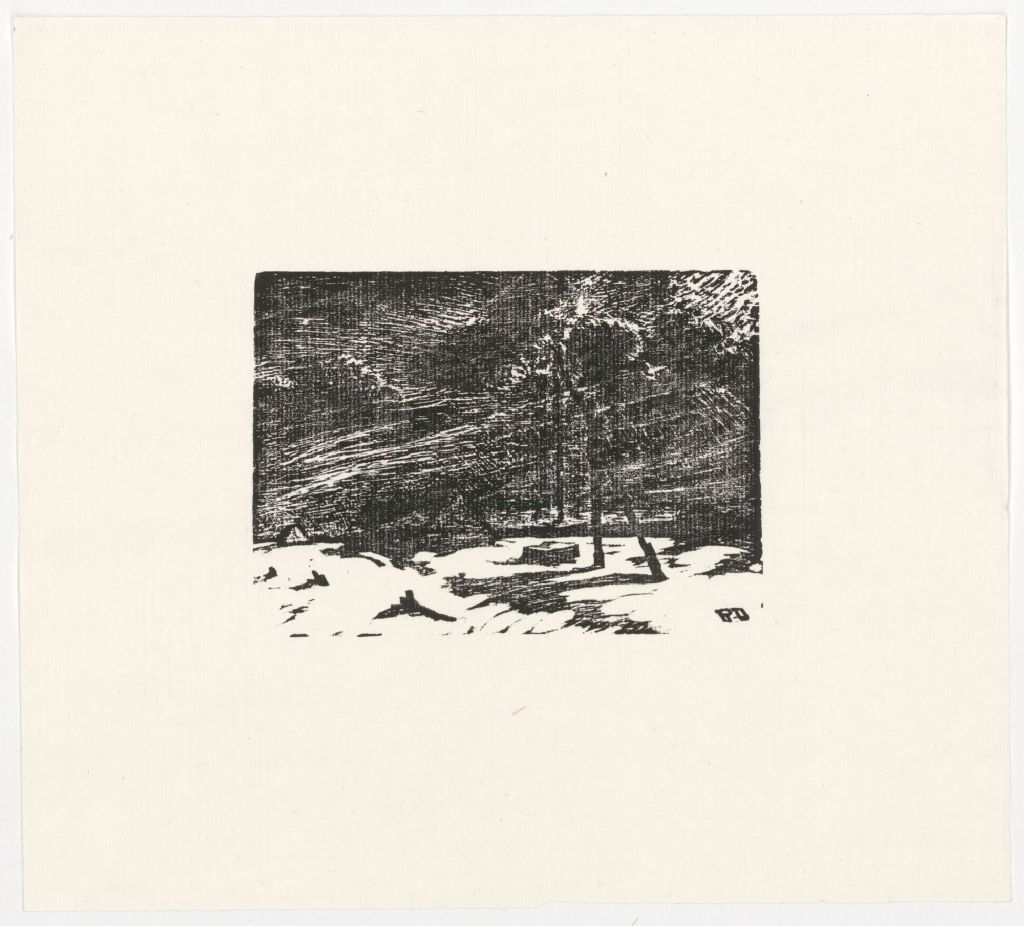 1 estampe : gravure sur bois de fil ; feuille