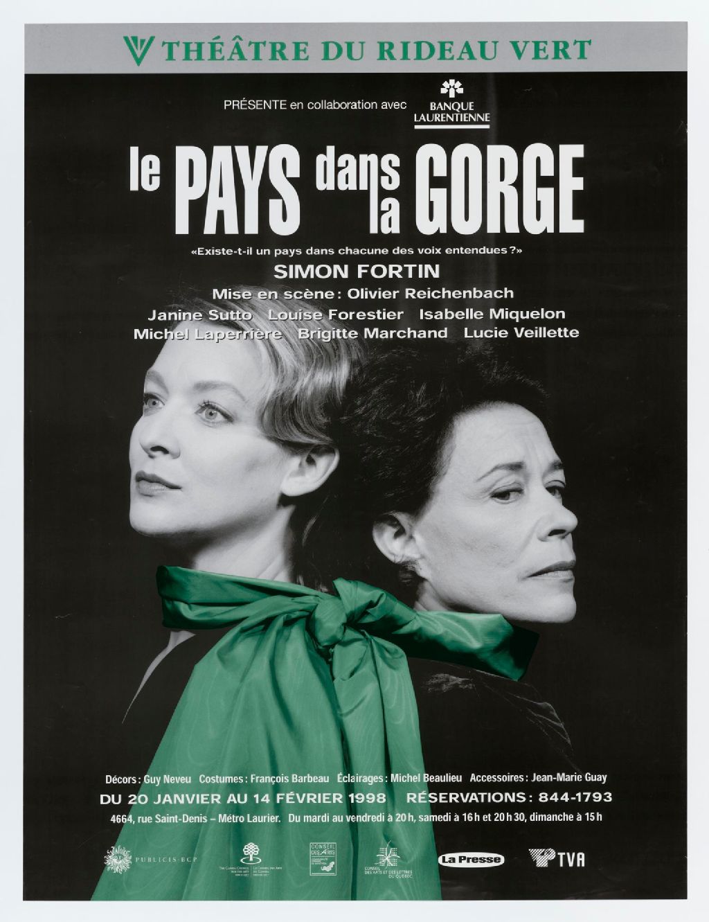 Théâtre du rideau vert présente en collaboration avec [la] Banque laurentienne, Le pays dans la gorge... [de] Simon Fortin, mise en scène Olivier Reichenbach