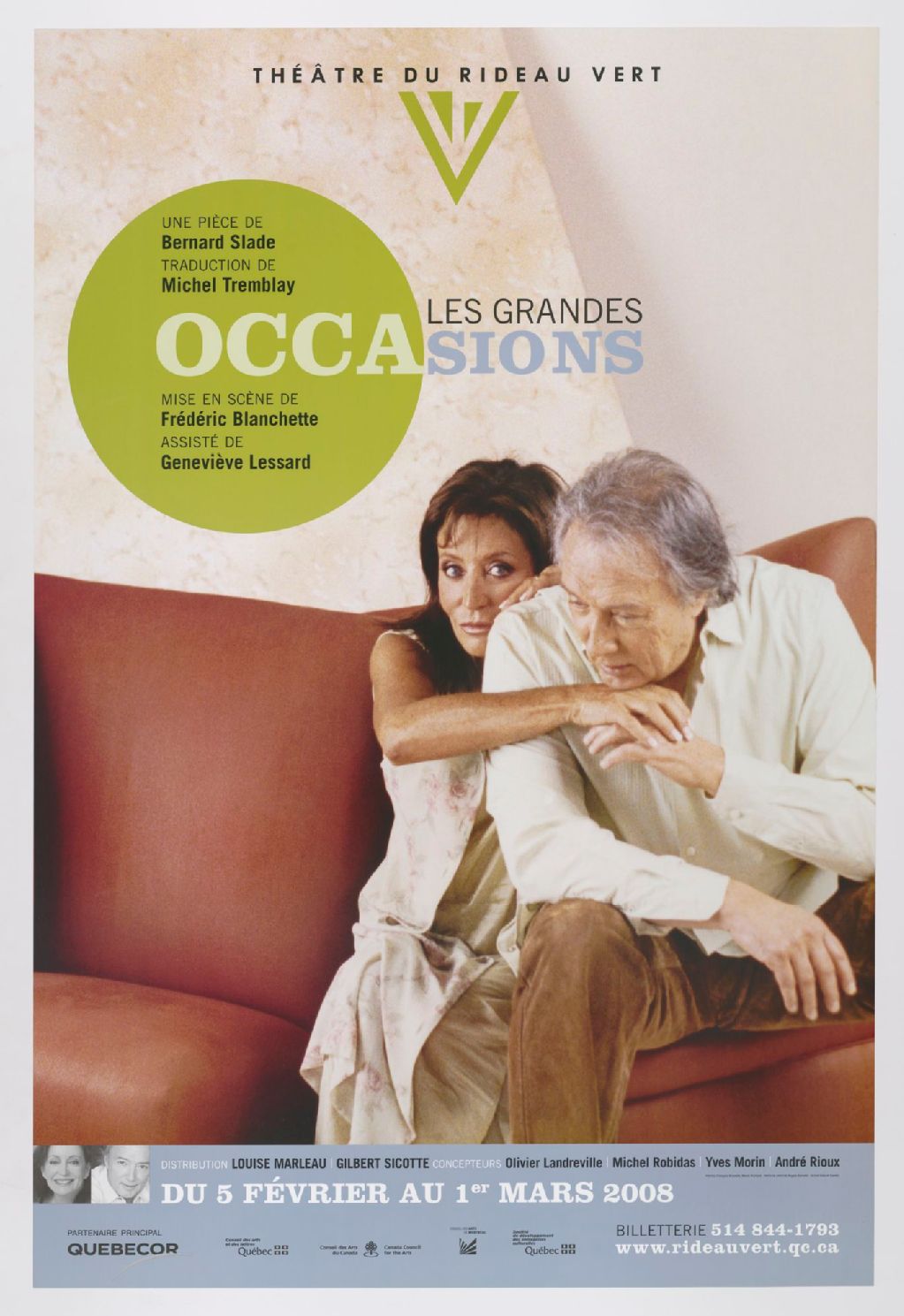 Les grandes occasions, une pièce de Bernard Slade, traduction de Michel Tremblay, mise en scène de Frédéric Blanchette