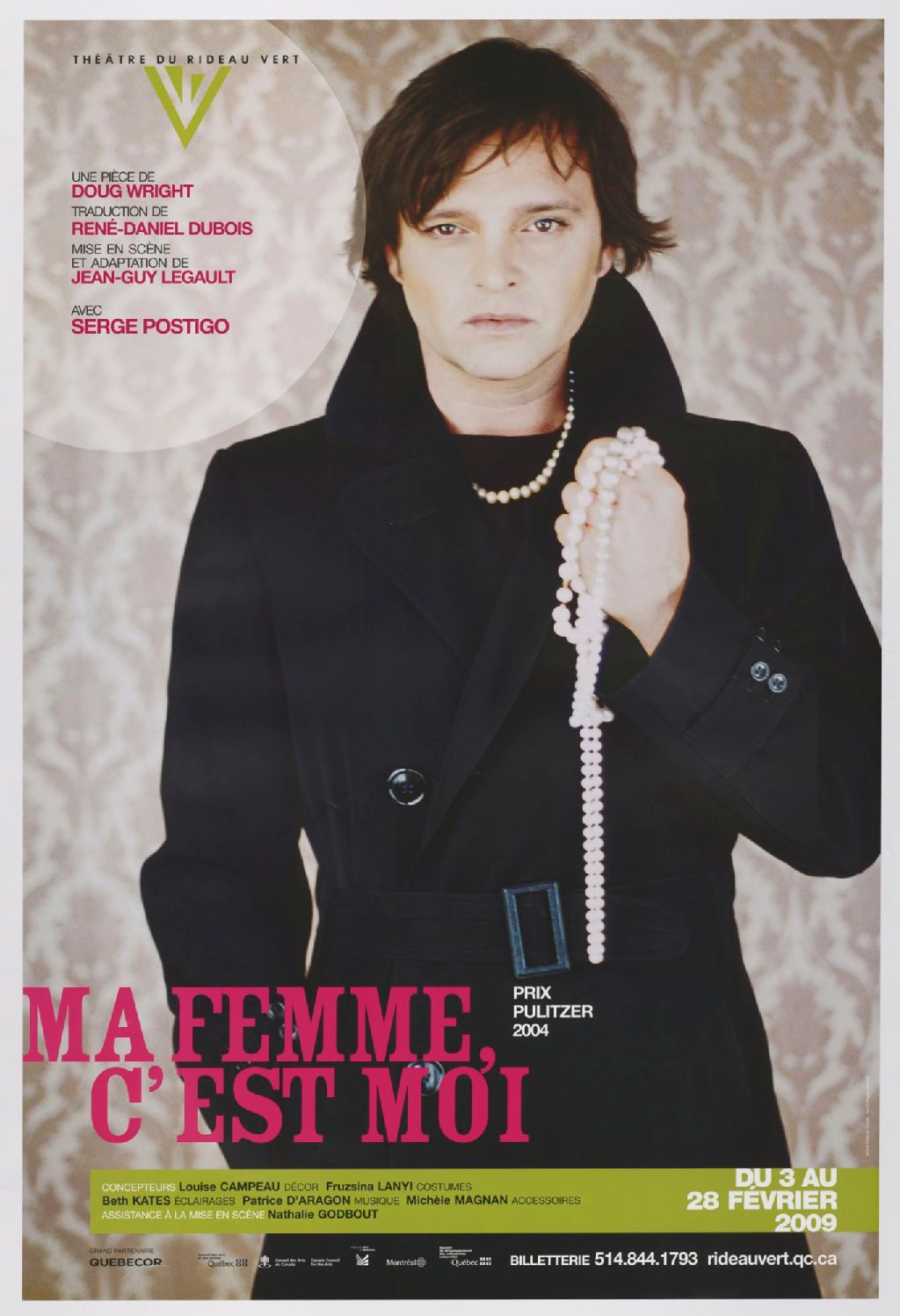 Ma femme c'est moi, une pièce de Doug Wright, traduction de René-Daniel Dubois, mise en scène et adaptation de Jean-Guy Legault Prix Pulitzer 2004