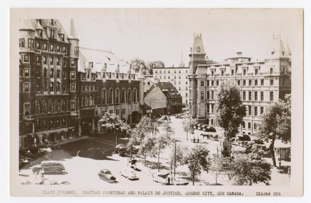 Place d'Armes, Château Frontenac and Palais de Justice, Quebec City, Que., Canada /