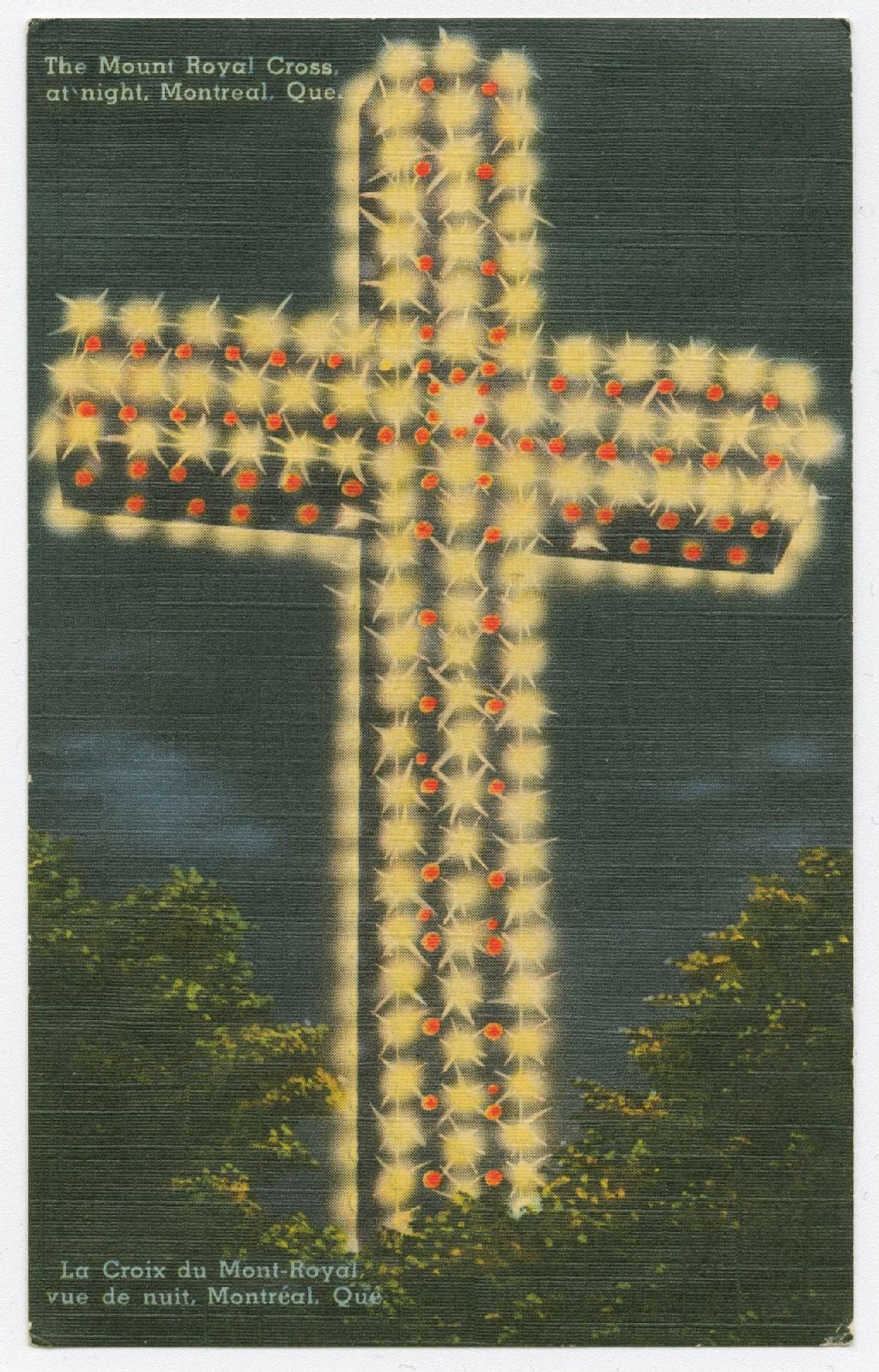 The Mount Royal Cross at night, Montreal, Que. = La croix du Mont-Royal, vue de nuit, Montréal, Qué.