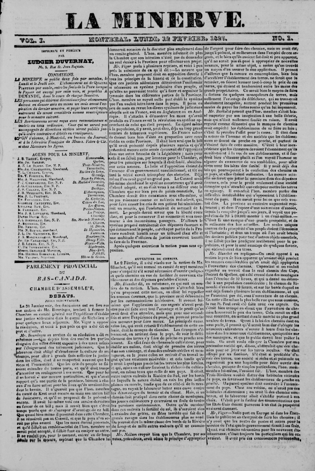 l'existence du journal La Minerve. Organe du parti patriote à
