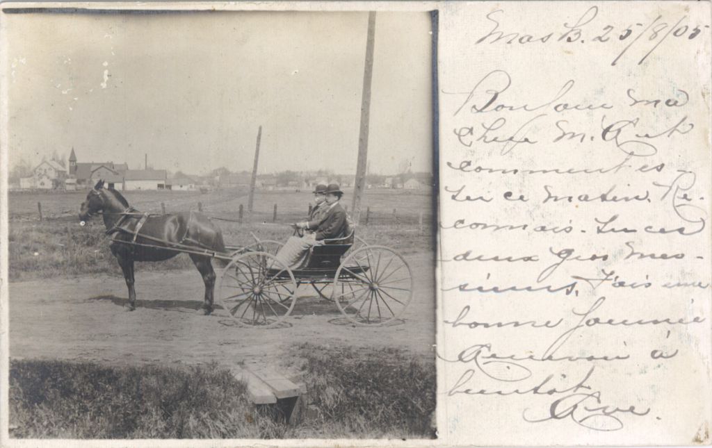 [2 hommes dans une voiture à cheval à Maskinongé]
