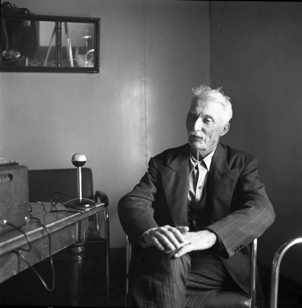 Le chanteur folklorique Jean Leblanc au Manoir Saint-Georges, Port-Daniel, 1950, Archives nationales à Québec, Fonds Lida Moser, (03Q,P728,S1,D1,P11-36), Lida Moser.