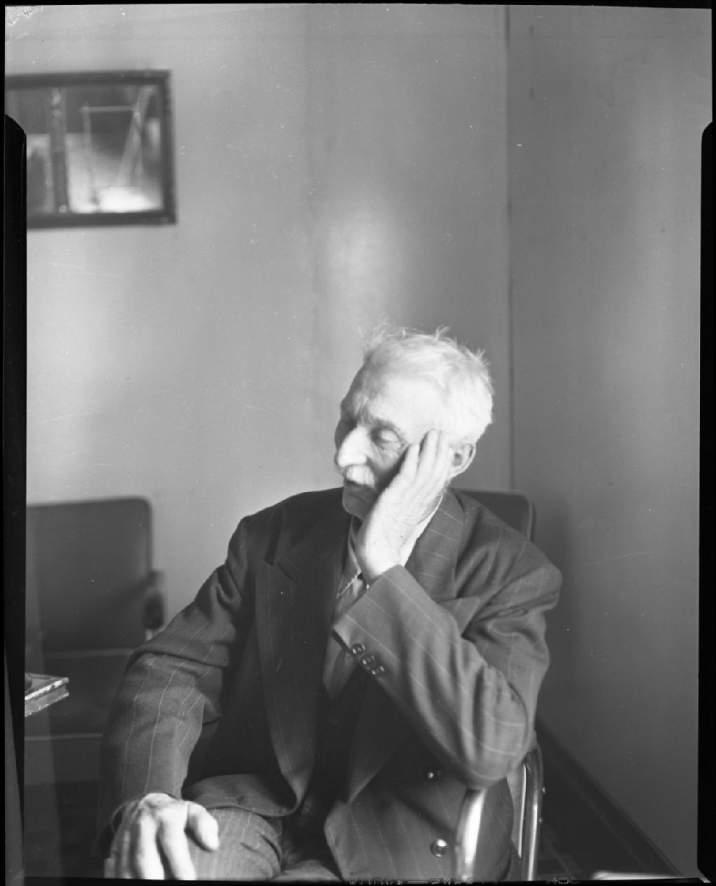 Le chanteur folklorique Jean Leblanc au Manoir Saint-Georges, Port-Daniel, 1950, Archives nationales à Québec, Fonds Lida Moser, (03Q,P728,S1,D1,P11-52), Lida Moser.