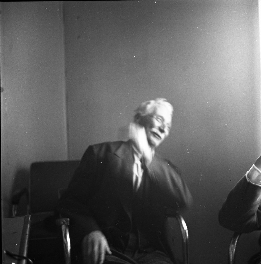 Le chanteur folklorique Jean Leblanc à l'intérieur du Manoir Saint-Georges de Port-Daniel, 1950, Archives nationales à Québec, Fonds Lida Moser, (03Q,P728,S1,D1,P11-6), Lida Moser.