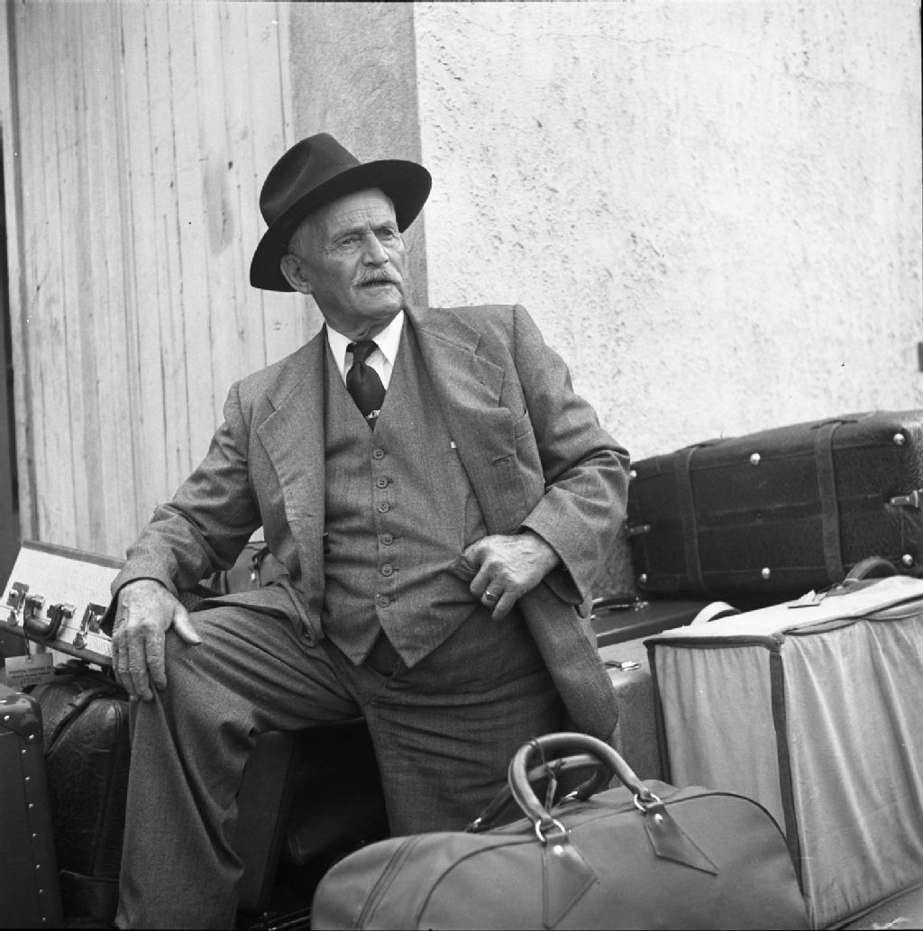Voyageur à la gare centrale d'autobus dans le quartier Saint-Roch, 1950, Archives nationales à Québec, Fonds Lida Moser, (03Q,P728,S1,D1,P1-27), Lida Moser.
