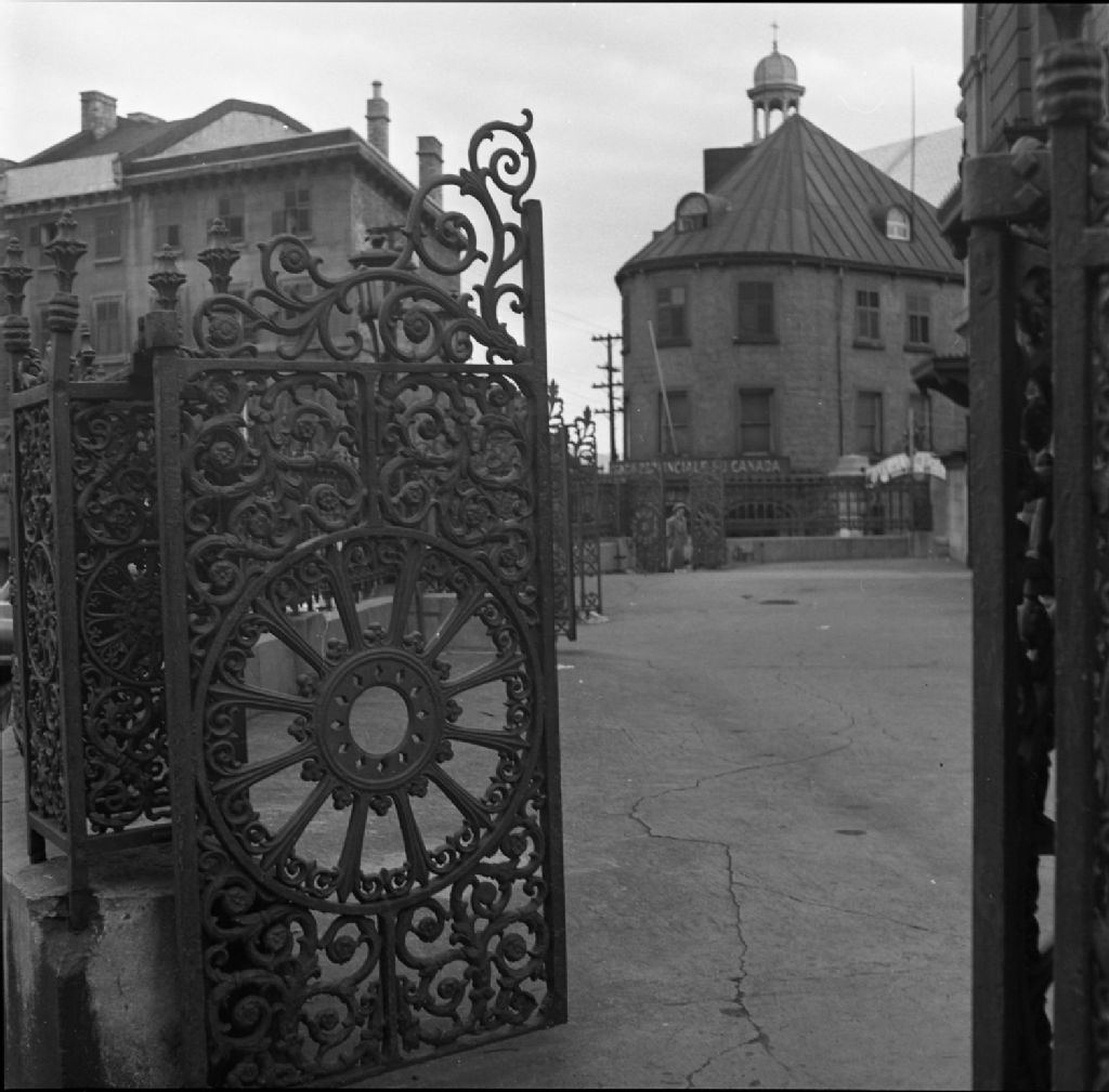 Vue éloignée de la Banque Provinciale du Canada, 1950, Archives nationales à Québec, Fonds Lida Moser, (03Q,P728,S1,D1,P1-30), Lida Moser.