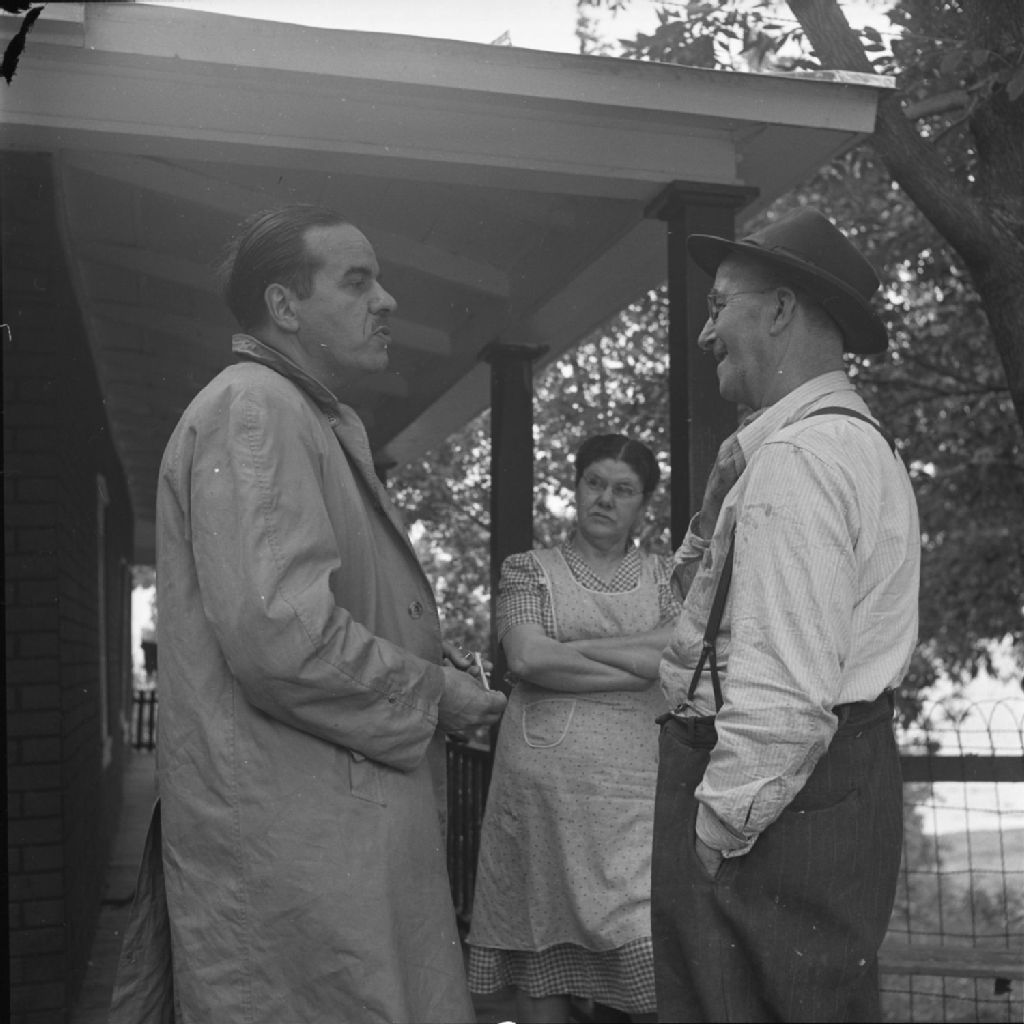 Paul Gouin avec monsieur Eugène Leclerc, Saint-Jean-Port-Joli, 1950, Archives nationales à Québec, Fonds Lida Moser, (03Q,P728,S1,D1,P20-91), Lida Moser.