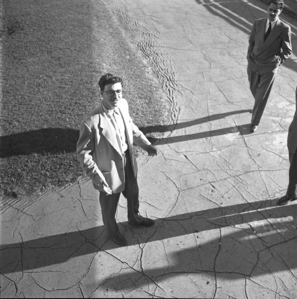 Roger Lemelin et au loin André Giroux sur la terrasse-Dufferin, 1950, Archives nationales à Québec, Fonds Lida Moser, (03Q,P728,S1,D1,P21-15), Lida Moser.