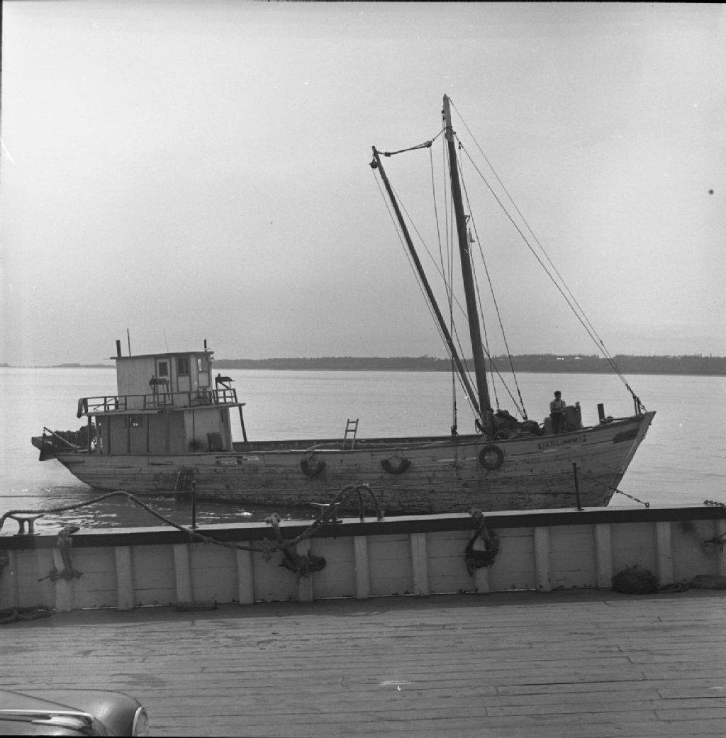 La goélette "A.H.L. Transport" au quai de Saint-Joseph-de-la-Rive, 1950, Archives nationales à Québec, Fonds Lida Moser, (03Q,P728,S1,D1,P4-1), Lida Moser.