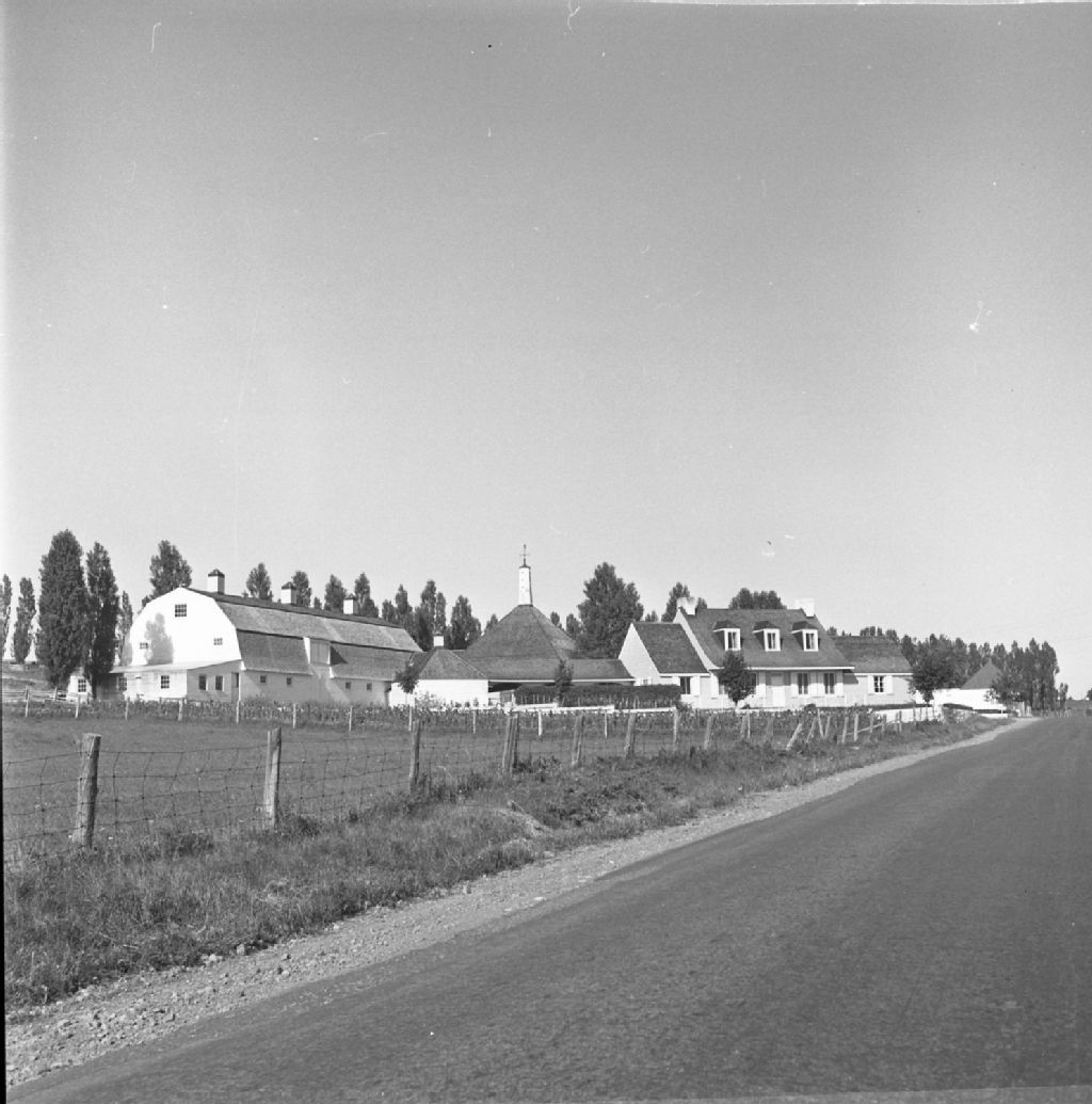 Vue sur une ferme de Charlevoix-Est, 1950, Archives nationales à Québec, Fonds Lida Moser, (03Q,P728,S1,D1,P7-6), Lida Moser.