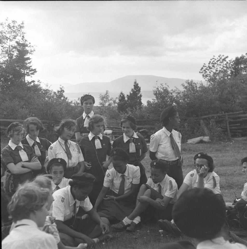 Activité en plein air dans un camp de scouts et guides du Québec / Martinique, Vallée de la Matapédia, 1950, Archives nationales à Québec, Fonds Lida Moser, (03Q,P728,S1,D1,P9-23), Lida Moser.