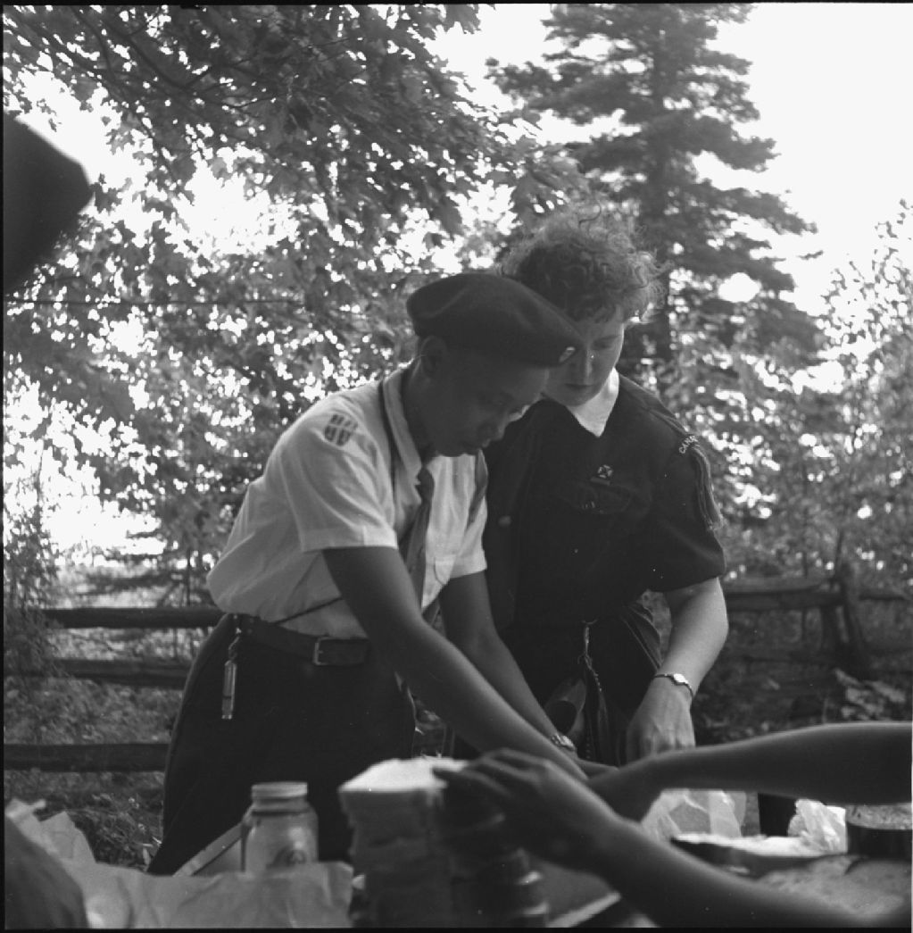 Activité en plein air dans un camp de scouts et guides du Québec / Martinique, Vallée de la Matapédia, 1950, Archives nationales à Québec, Fonds Lida Moser, (03Q,P728,S1,D1,P9-28), Lida Moser.