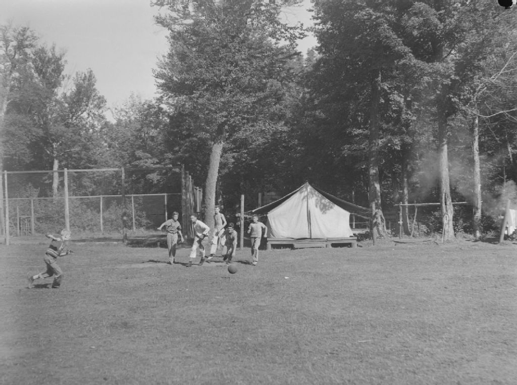 Camp. Powter's Camp : Soccer, 19 août 1944, Archives nationales à Montréal, Fonds Conrad Poirier, (06M,P48,S1,P10071), Poirier, Conrad.