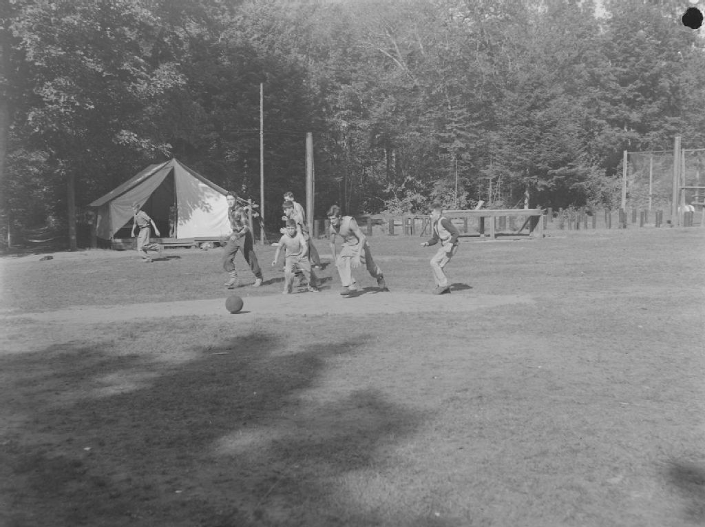 Camp. Powter's Camp : Soccer, 19 août 1944, Archives nationales à Montréal, Fonds Conrad Poirier, (06M,P48,S1,P10083), Poirier, Conrad.